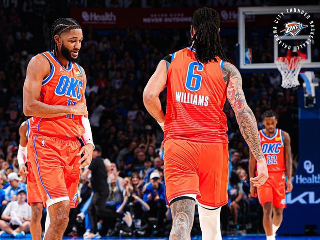 北京時間11月12日,NBA常規(guī)賽迎來一場焦點大戰(zhàn),雷霆主場對陣勇士。此前雷霆戰(zhàn)績10勝1負,排名西部第一,勇士戰(zhàn)績6勝5負,排名西部第七。首先,這支雷霆在二當家杰威長時間養(yǎng)傷,且多位重要角色球員因傷病進進出出的情況下,還能打出聯(lián)盟第一的戰(zhàn)績,確實印證了他們可怕的陣容深度和強大的整體實力。列舉幾個數(shù)據(jù),雷霆本賽季場均控制失分108.8分聯(lián)盟第一,防守效率105.8聯(lián)盟第一!凈效率值+13.2聯(lián)盟第一,和他們能在同一水平線的只有掘金,當然,掘金是進攻大隊,雷霆這幾個賽季,可都是防守最強的球隊。